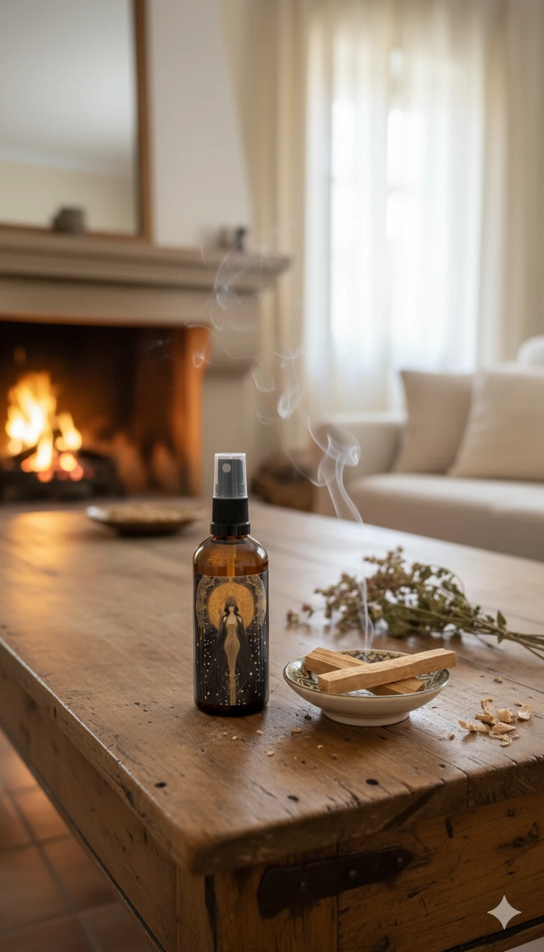 Ambientador natural artesanal con aroma a palo santo, ideal para crear un ambiente cálido, sereno y equilibrado en el hogar.