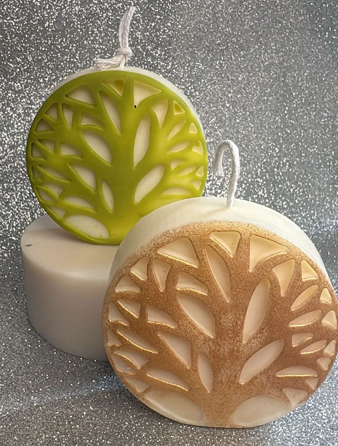 Vela decorativa de soja 100% natural, hecha a mano, con forma de árbol de la vida. El regalo perfecto o el complemento perfecto para la decoración de tu hogar. Libre de tóxicos y completamente ecológica.