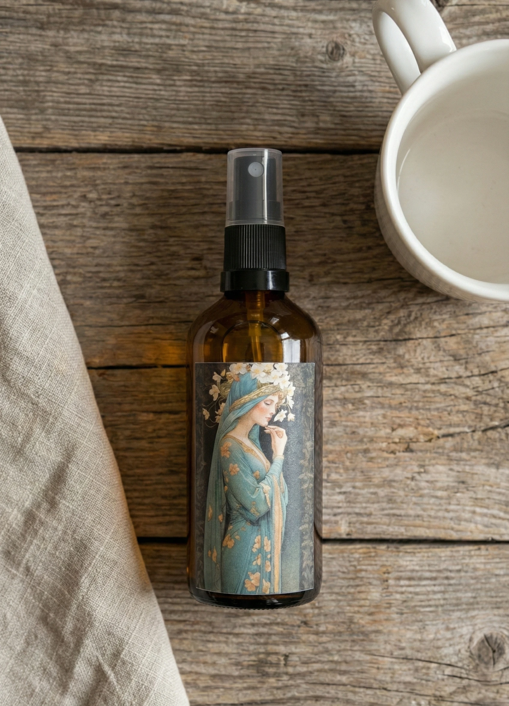 Bruma de almohada artesanal con aroma natural a flor de naranjo, ideal para perfumar el hogar y crear una atmósfera de calma, frescura y bienestar.