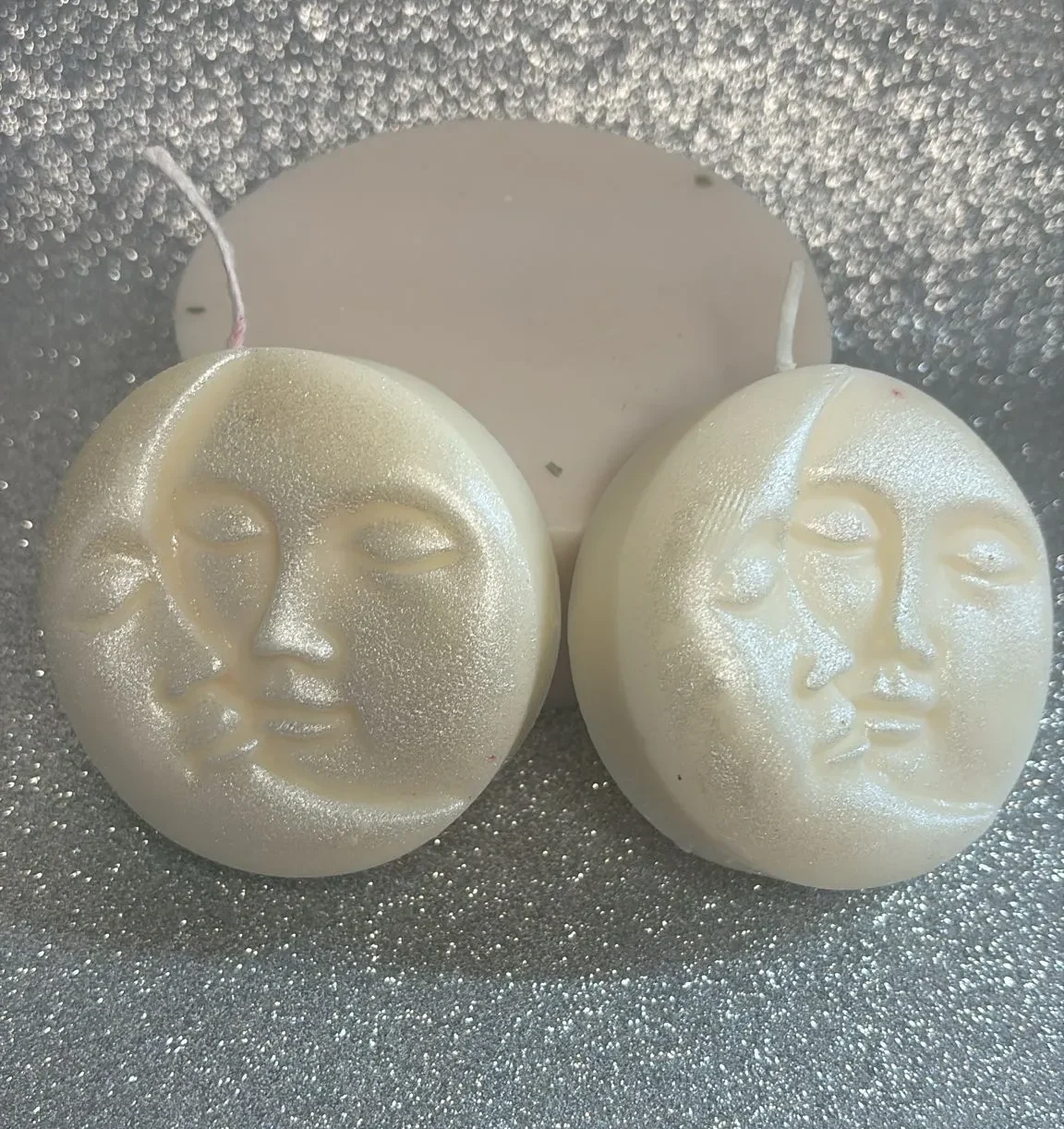 Vela de soja 100% natural, hecha a mano, con forma de luna. Ideal como regalo en comuniones, bodas, bautizos, cumpleaños o eventos. Libre de tóxicos y completamente ecológica.