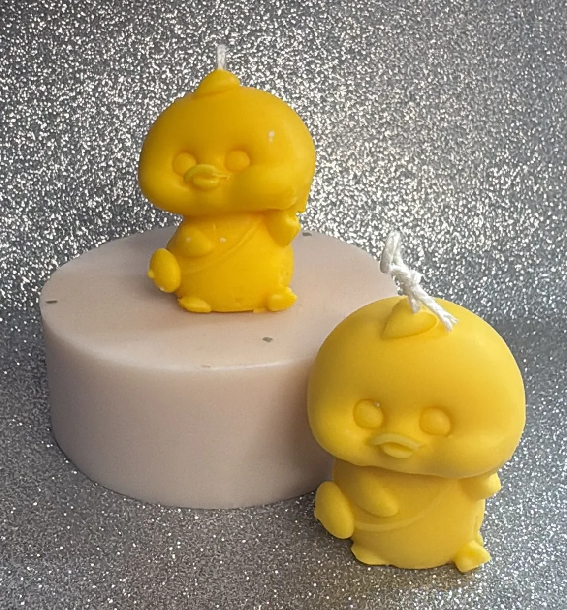 Vela de soja 100% natural, hecha a mano, con forma de patito. Ideal como regalo en bautizos, baby showers, cumpleaños o eventos. Libre de tóxicos y completamente ecológica.