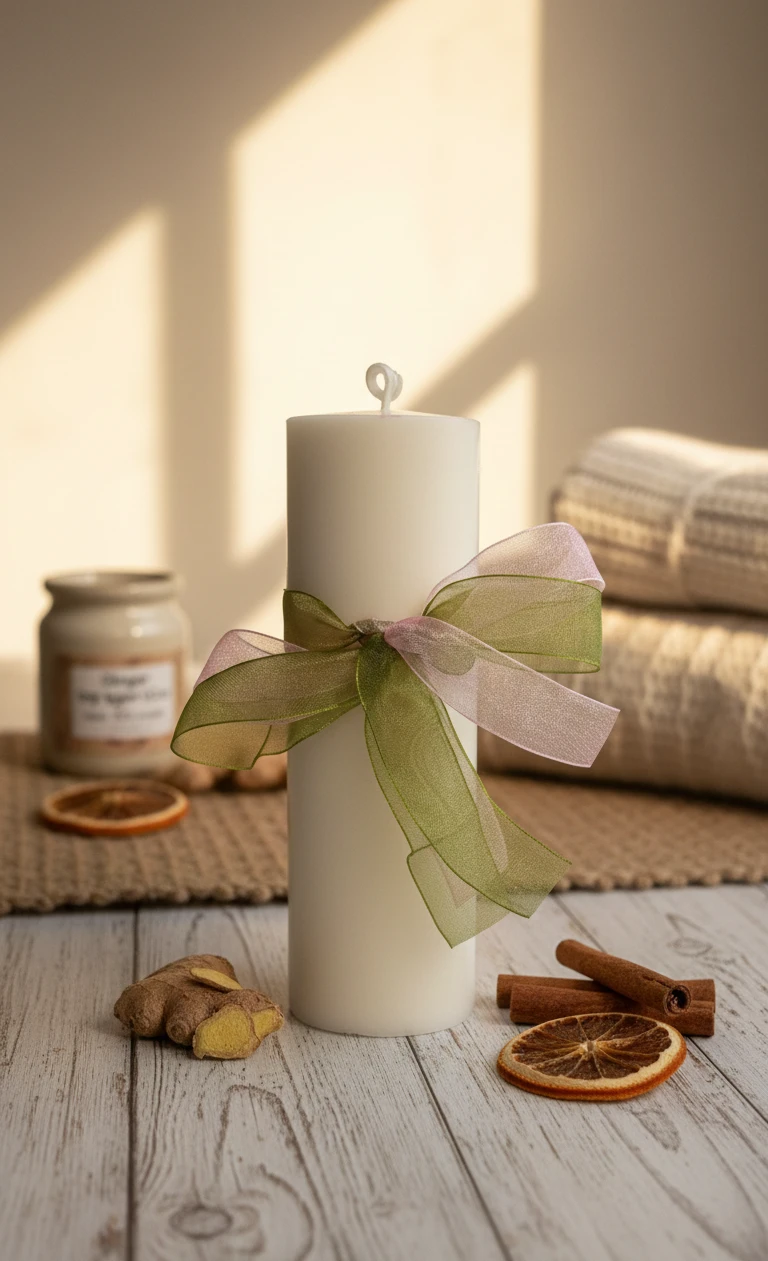 La vela de pilar blanca aroma jengibre es pura energía en forma de luz.