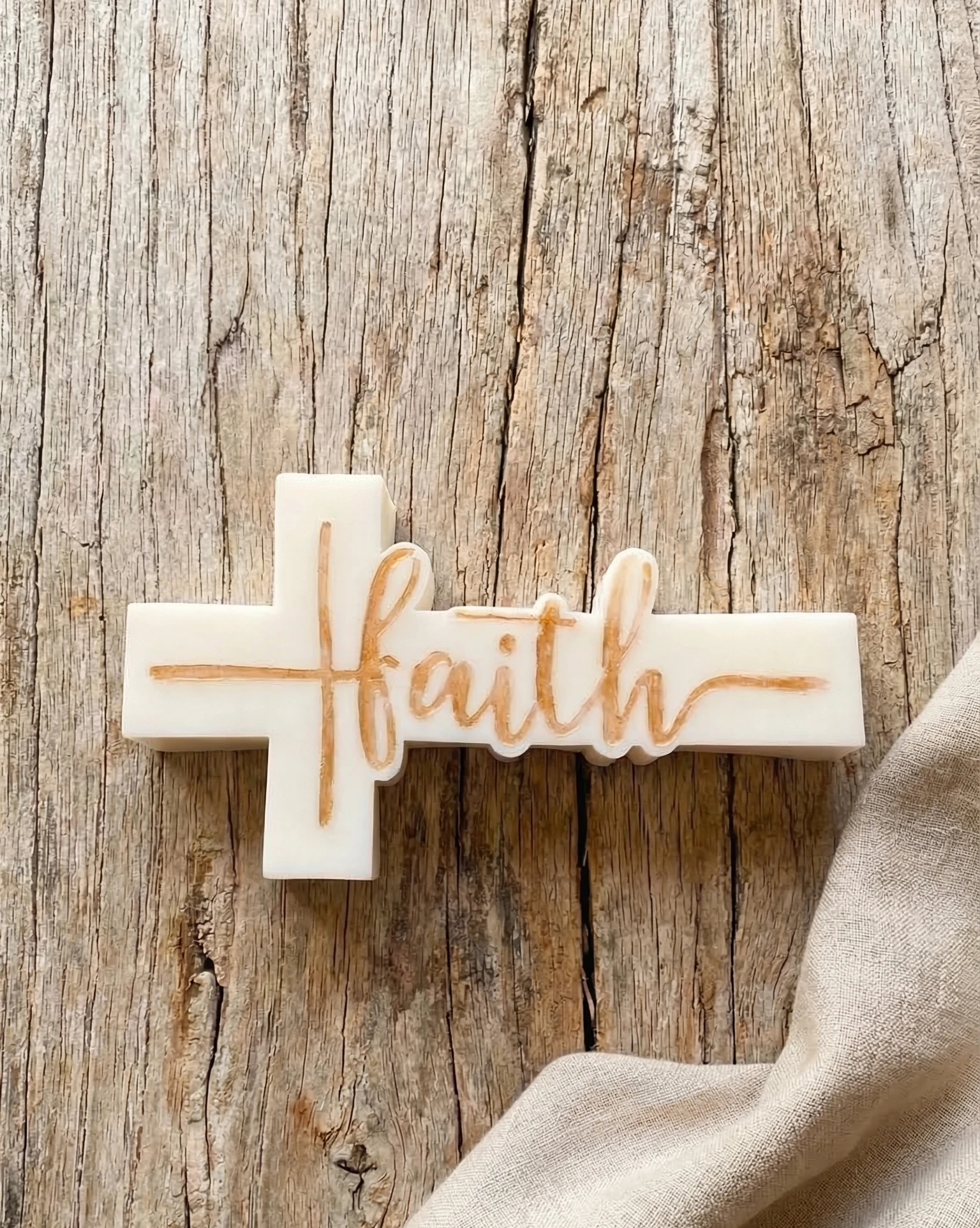 La vela Faith transmite una sensación de calma, sencillez y delicadeza.