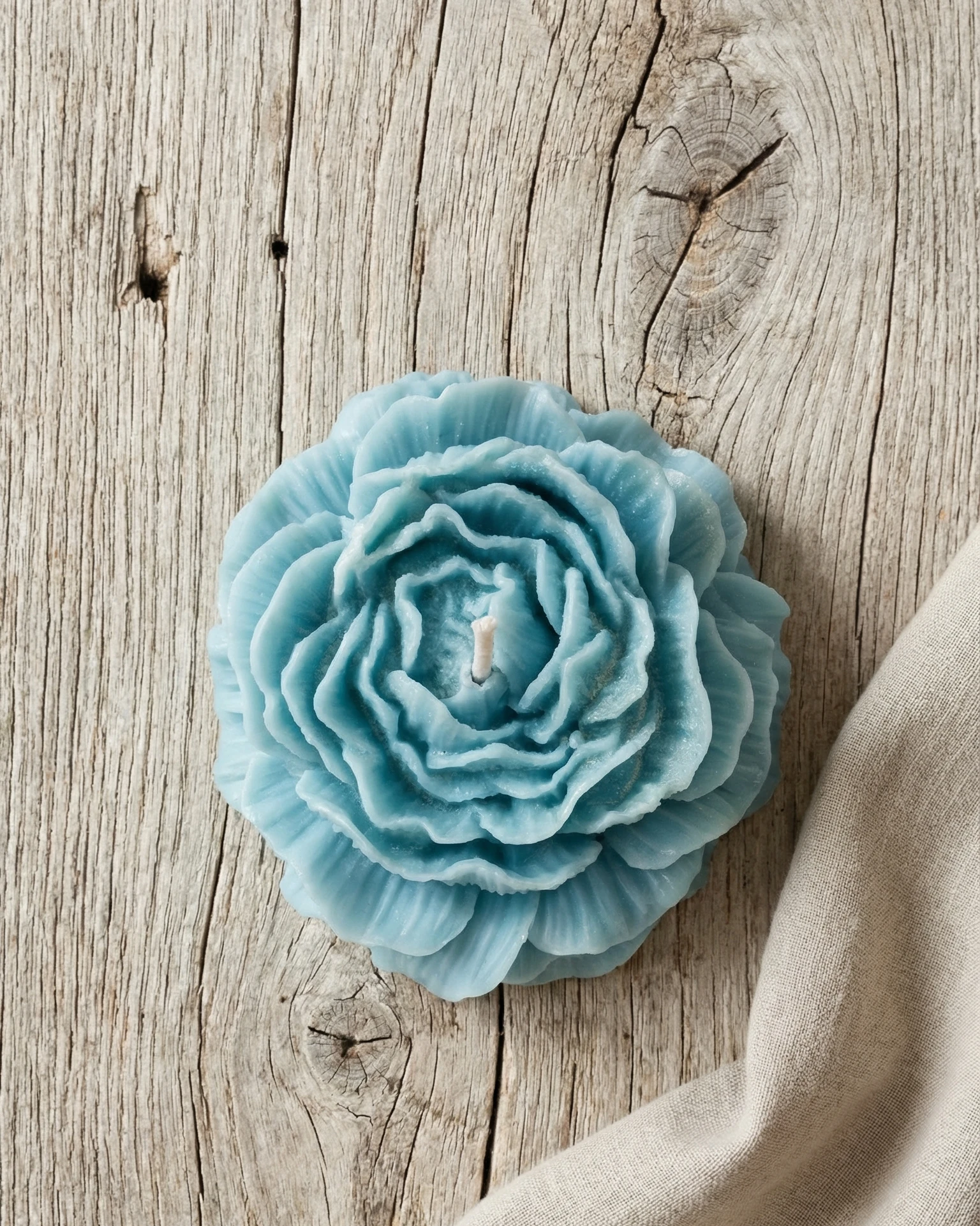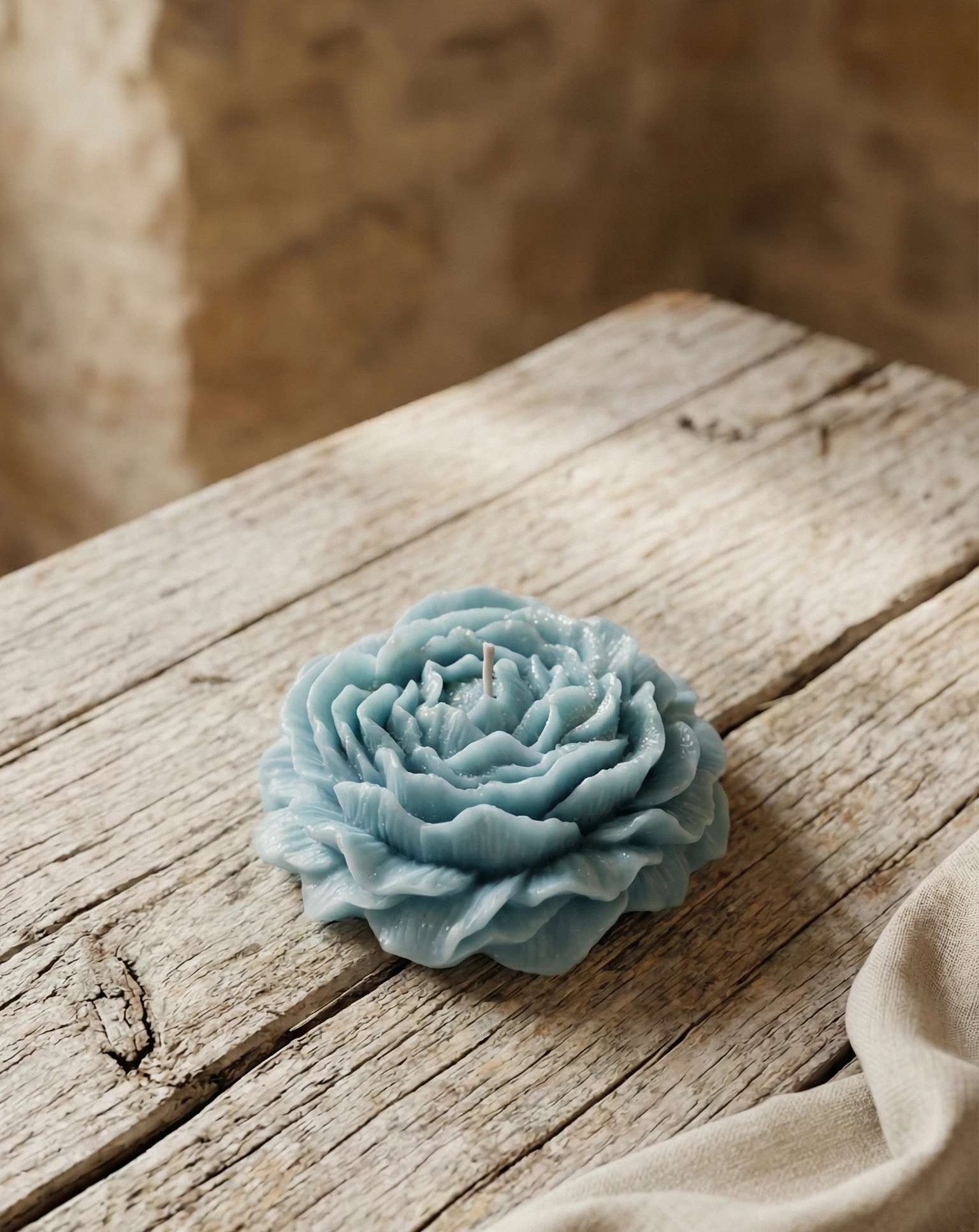 Vela de soja decorativa artesanal con forma de peonia, hecha a mano con cera natural. Una vela decorativa elegante que aporta belleza, calma y un toque floral al hogar.