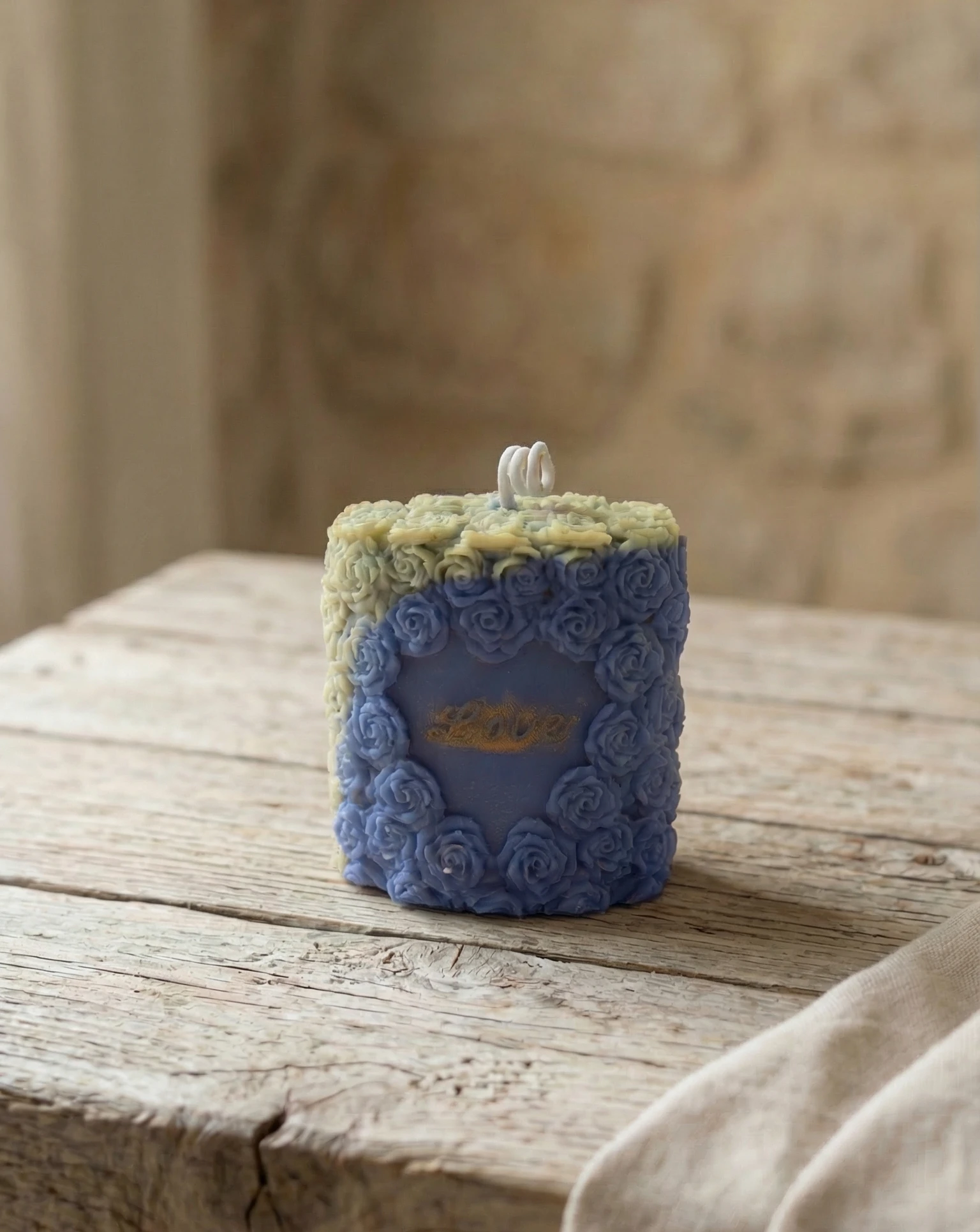 Sus rosas esculpidas evocan delicadeza y romanticismo. Cuando la llama se enciende, la luz cálida realza los detalles florales y crea un ambiente acogedor perfecto para compartir momentos especiales.