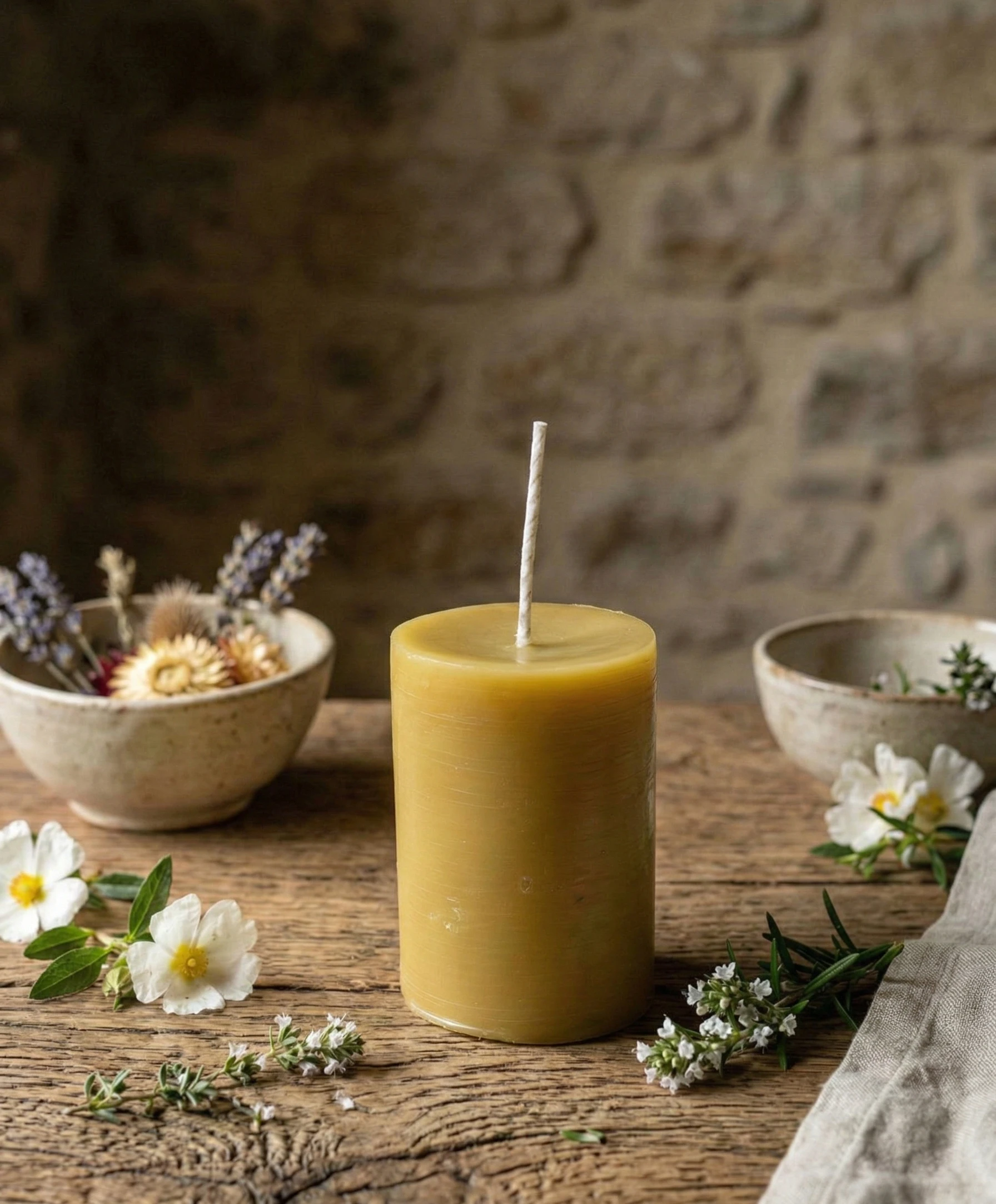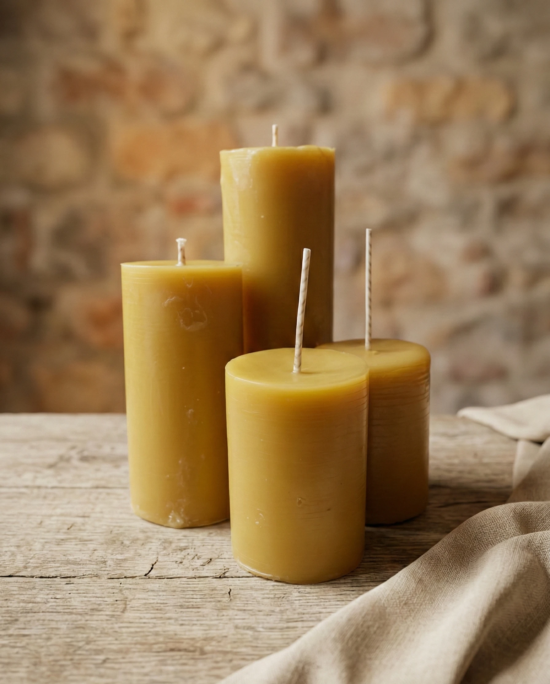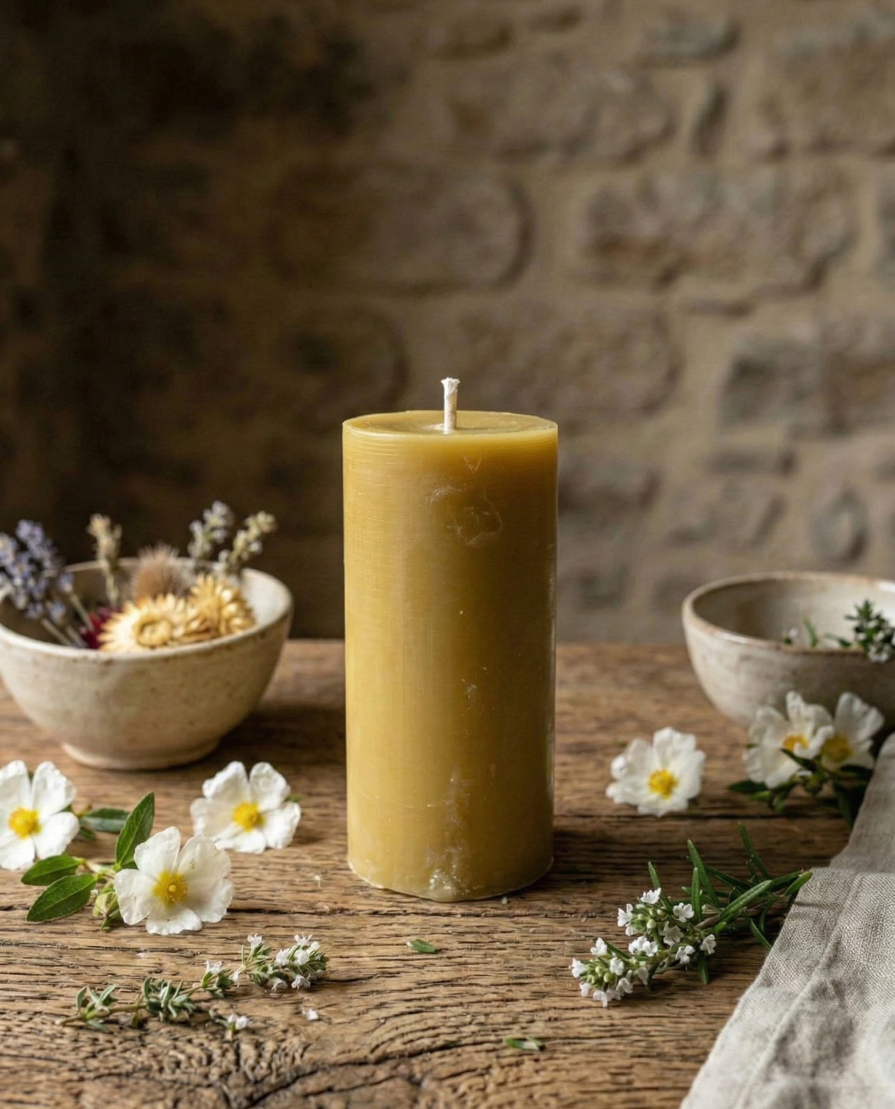 Nuestras velas de pilar de cera pura de abeja están elaboradas artesanalmente con cera 100% natural, sin parafina ni aditivos.